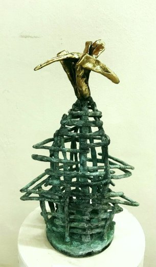 Litý bronz, výška 38 cm, zelená patina, sign., cena info galerie